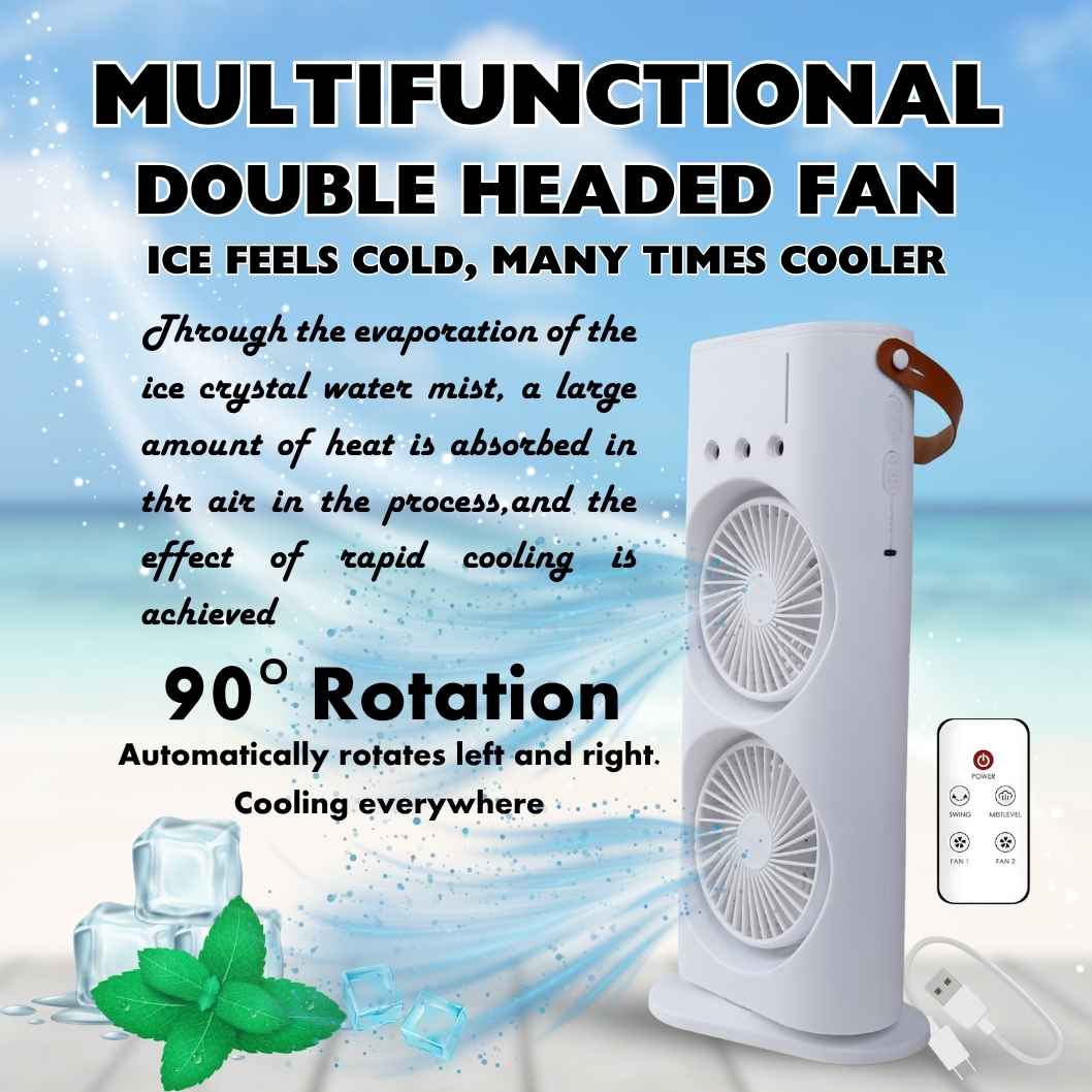 ছাড়MULTIFUNCTIONAL DOUBLE HEADED RECHARGEABLE AIRCOOLER FAN